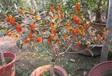 朱砂桂:为丹桂品种群,乔木,高5米,灌幅3米,树冠圆球形,紧密度中等,树皮浅灰色,比较平滑,皮孔稀疏,形状。大小不一。叶片披针形,长10-15厘米,宽3.5-4.0厘米,叶色暗绿,全缘或顶端有锯齿,…全部>>