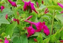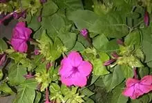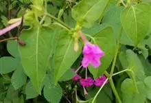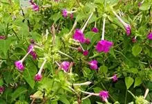 即紫茉莉,英文名:Four-o'clock,Marvel of Peru,为紫茉莉科、紫茉莉属多年生草本植物,一年生栽培。株高50~80cm。根粗壮,茎多分枝而散生。叶对生,卵形或心脏形。花数朵簇生…全部>>
