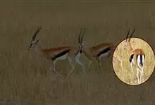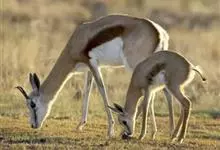 阿拉伯沙瞪羚:是偶蹄目、牛科、瞪羚属的食草动物。头尾长97厘米,身高约55-60厘米。雄性体重约为22千克,雌性性体重为18千克。雌雄都有犄角,雄性长达27厘米,雌性15厘米。体型较小。腿细长,…全部>>