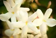 素馨花,木犀科素馨属多年生的攀援灌木植物。攀援灌木,小枝圆柱形,具棱或沟;叶对生,叶轴常具窄翼,小叶片卵形或长卵形;聚伞花序顶生或腋生,花序梗长,苞片线形,花萼无毛,裂片锥状线形,花冠白色,…全部>>