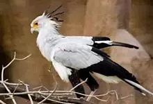 蛇鹫,是鹰形目蛇鹫科蛇鹫属一种。蛇鹫头钩喙似鹰,长腿似鹤,头顶羽冠;羽冠低垂,眼睛周围橙红色的赤裸皮肤;上身披洁白羽毛,翅膀后部和尾部则覆盖着黑色羽毛;尾羽中间的两根白色羽毛极长,达60多厘米,…全部>>