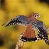 红隼:是隼科、隼属的小型猛禽之一。体重173-335克,体长305-360毫米。翅狭长而尖,尾亦较长,外形和共同爪隼非常相似。雄鸟头蓝灰色,背和翅上覆羽砖红色,具三角形黑斑;腰、尾上覆羽和尾羽蓝灰色,…全部>>