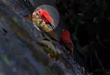 血雀雀科朱雀属鸟类,体重36-49克;体长155-182毫米。雄鸟除眼先、翼与尾为黑色外,通体为鲜红色;嘴鲜黄;雌鸟暗橄榄绿色,羽端较淡或带黄色;腰鲜黄;嘴较暗。虹膜褐色;嘴黄色;腿和脚褐色。…全部>>