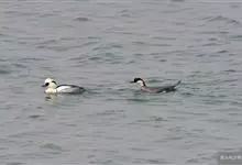 普通秋沙鸭是秋沙鸭中个体最大的一种,体长54-68厘米,体重最大可达2千克。雄鸟头和上颈黑褐色而具绿色金属光泽,枕部有短的黑褐色冠羽,使头颈显得较为粗大。下颈、胸以及整个下体和体侧白色,背黑色,…全部>>