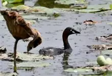 小鸊鷉,是鸊鷉目鸊鷉科小鸊鷉属的鸟类。成鸟:上体黑褐色,部分羽毛尖端苍白;眼先、颏、上喉等黑褐;下喉、耳羽、颈侧红栗色;初级、次级飞羽灰褐色,飞羽灰褐,初级飞羽尖端灰黑,…全部>>
