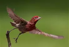 普通朱雀是雀形目雀科朱雀属鸟类,又名红朱雀、马料、青麻料。雄鸟上体红色,下体淡红色;头部、喉部、胸部及腰部亮红色;背部褐色染红色;两翼及尾黑褐色,羽缘染红色。雌鸟上体橄榄褐色,下体近白色,…全部>>