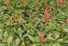 红叶石楠 是蔷薇科,石楠属杂交种,为常绿小乔木或灌木,乔木高可达5米、灌木高可达2米。叶片革质,长圆形至倒卵状、披针形,叶端渐尖,叶基楔形,叶缘有带腺的锯齿,花多而密,复伞房花序,花白色,梨果黄红色,…全部>>