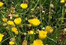 黄晶菊 Durieu)是菊科、菊属二年生草本花卉,黄晶菊株高可达20厘米,茎具半匍匐性。叶片互生,肉质,初生叶紧贴土面。叶形长条匙状,头状花序顶生、盘状。花茎挺拔,花小繁多,花色金黄边缘为扁平舌状花,…全部>>
