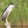 夜鹭是中型涉禽,体长46-60厘米。体较粗胖,颈较短;嘴尖细,微向下曲,黑色;胫裸出部分较少,脚和趾黄色;头顶至背黑绿色而具金属光泽;上体余部灰色;下体白色;枕部披有2-3枚长带状白色饰羽,下垂至背上,…全部>>