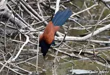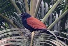 褐翅鸦鹃,是鹃形目鸦鹃科鸦鹃属的鸟类。褐翅鸦鹃的身体为黑色;头颈和胸带蓝紫色金属光泽并具黑亮的羽干纹,下胸至腹部泛金属绿光泽;两翼和肩部为棕栗色,外侧飞羽具暗色羽端,尾羽闪铜绿色光泽;虹膜赤红色,…全部>>