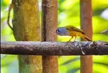 方尾鹟:体重6-11克,体长102-130毫米。是一种体型小而独具特色的鹟。头偏灰,略具羽冠,嘴扁平,嘴基宽阔几成等边三角形,嘴须发达长而多,几达嘴端口;头顶至后颈黑灰色,背橄榄绿色,两翅和尾黑灰色,…全部>>