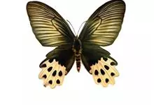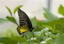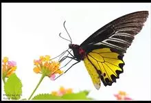 金裳凤蝶是凤蝶科、裳凤蝶属的动物。金裳凤蝶身体呈黑色,头、颈和胸侧有红毛,腹部有黑黄两色相间条纹,雄蝶前翅黑色,具黑天鹅绒光泽,各脉两侧灰白色,后翅金黄色,各室外缘有等腰三角形黑斑1枚,斑内侧有晕,…全部>>