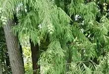 落羽杉 Rich.),杉科落羽杉属木本植物。树干尖削度大,基部通常膨大,具膝状呼吸根,树皮棕色,裂成长条片;一年生小枝褐色,侧生短枝;叶线形;球果具短柄,熟时淡褐黄色,被白粉;花期3月;球果10月成熟。…全部>>
