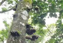 聚果榕是桑科榕属植物,乔木,高达25-30米,胸径60-90厘米,树皮灰褐色。叶薄革质,椭圆状倒卵形至椭圆形或长椭圆形,长10-14厘米,宽3.5-4.5厘米。榕果聚生于老茎瘤状短枝上,…全部>>