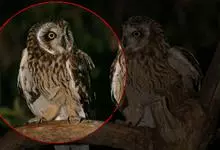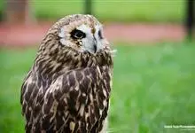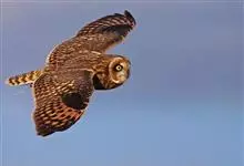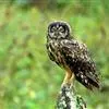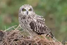 短耳鸮又名小耳木兔、田猫王、夜猫子等,是鸮形目鸱鸮科耳鸮属中小型猛禽动物。成鸟面盘显著,眼周黑色;眼先及内侧眉纹灰白色,面盘余部棕黄色杂以黑色细羽干纹;耳簇羽短小而几乎不外露,…全部>>