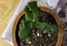 筒叶花月,是景天科青锁龙属的多年生草本植物。植株多分株,灌木状,茎较粗壮,圆柱形,表皮灰褐色;叶片肉质,互生,呈圆筒状,簇生于茎或分枝顶端,叶端呈斜截形,截面为椭圆形;花呈星状,淡白色;花期秋季。…全部>>
