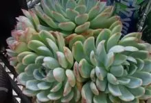 蓝石莲是景天科、拟石莲花属的多肉植物。茎部粗壮,成熟植株茎部木质化。叶片莲座型密集排列,株径不会很大,叶片相对较薄,常年绿色,表面布有白色粉末,中部凹陷,呈倒水滴状。叶尖较尖,叶缘光滑无褶皱,…全部>>