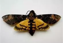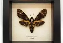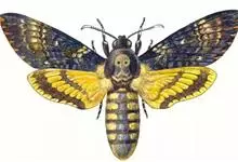 鬼脸天蛾,是鳞翅目天蛾科面形天蛾属动物。成虫翅展100~125毫米,体黑褐色;胸背有骷髅形斑纹;卵圆球形,直径约2毫米,淡黄绿色,表面光滑;老熟幼虫体长70~90毫米,蛹体长约56毫米;前翅为褐色,…全部>>