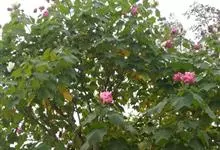 海滨木槿是锦葵科木槿属植物,落叶小乔木,株高3-5米,胸径20厘米,扁球形树冠,枝叶繁盛。厚纸质单叶互生,扁圆形、倒卵形或宽倒卵形,先端钝近平,具短突尖,基部圆形或浅心形,叶缘中上部具细圆齿,…全部>>