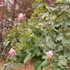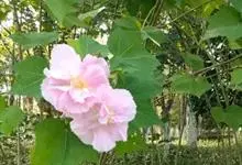 木芙蓉,锦葵科木槿属落叶灌木或小乔木。小枝上有细绒毛;叶片为卵状心形,托叶为披针形,常早落;花单生,花萼为钟形,花冠初为白色或淡红色,后逐渐变为深红色;果实为扁球形,有淡黄色的毛附着。花期8到10月。…全部>>
