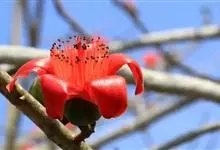 木棉是锦葵科、木棉属落叶大乔木,树皮灰白色,幼树的树干通常有圆锥状的粗刺;分枝平展。掌状复叶,小叶5-7片,长圆形至长圆状披针形,花单生枝顶叶腋,通常红色,有时橙红色,直径约10厘米;萼杯状,…全部>>