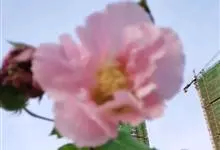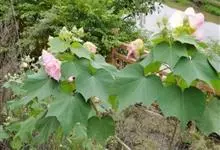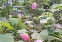木芙蓉,锦葵科木槿属落叶灌木或小乔木。小枝上有细绒毛;叶片为卵状心形,托叶为披针形,常早落;花单生,花萼为钟形,花冠初为白色或淡红色,后逐渐变为深红色;果实为扁球形,有淡黄色的毛附着。花期8到10月。…全部>>