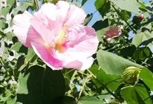 海滨木槿是锦葵科木槿属植物,落叶小乔木,株高3-5米,胸径20厘米,扁球形树冠,枝叶繁盛。厚纸质单叶互生,扁圆形、倒卵形或宽倒卵形,先端钝近平,具短突尖,基部圆形或浅心形,叶缘中上部具细圆齿,…全部>>
