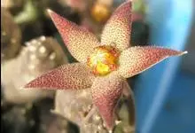 豹皮花 L. C. Leach)是夹竹桃科、豹皮花属植物。肉质植物,茎亮绿色,几株簇生在一起,高约10厘米,状似仙人掌,四棱,棱稍钝,棱具粗厚软刺,光滑,绿色。无叶。…全部>>