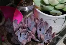紫珍珠是景天科石莲花属的多年生肉质草本植物。植株中小型;叶片肉质,匙形,呈莲座状紧密排列;叶片粉紫色,叶缘呈粉白色,光照充足时颜色亮丽,不足时叶色会呈现深绿色或灰绿色,叶面光滑,被轻微白粉,…全部>>