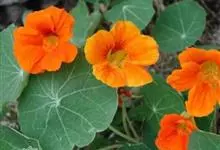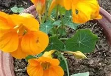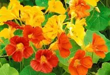 旱金莲是旱金莲科旱金莲属蔓生一年生草本植物。叶互生,叶柄向上扭曲,盾状,叶圆形,具波状浅缺刻,下面疏被毛或有乳点;花黄、紫、桔红或杂色,花托杯状,花瓣为圆形,边缘具缺刻;果实为扁球形;花果期6-10月,…全部>>
