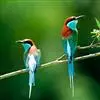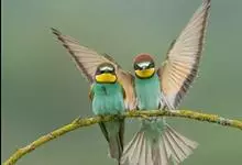 蓝颊蜂虎:是蜂虎科、蜂虎属的鸟类,共有2个亚种。体长27-33厘米,翼展46-49厘米,体重38-50克。嘴形细长而下弯,先端尖,…全部>>