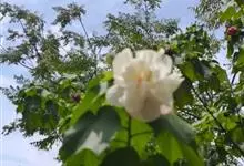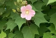 海滨木槿是锦葵科木槿属植物,落叶小乔木,株高3-5米,胸径20厘米,扁球形树冠,枝叶繁盛。厚纸质单叶互生,扁圆形、倒卵形或宽倒卵形,先端钝近平,具短突尖,基部圆形或浅心形,叶缘中上部具细圆齿,…全部>>