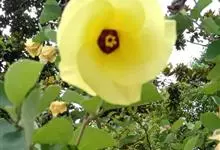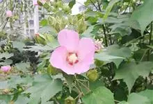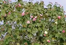 海滨木槿是锦葵科木槿属植物,落叶小乔木,株高3-5米,胸径20厘米,扁球形树冠,枝叶繁盛。厚纸质单叶互生,扁圆形、倒卵形或宽倒卵形,先端钝近平,具短突尖,基部圆形或浅心形,叶缘中上部具细圆齿,…全部>>