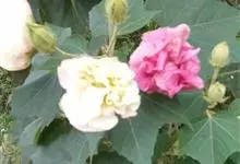 木芙蓉,锦葵科木槿属落叶灌木或小乔木。小枝上有细绒毛;叶片为卵状心形,托叶为披针形,常早落;花单生,花萼为钟形,花冠初为白色或淡红色,后逐渐变为深红色;果实为扁球形,有淡黄色的毛附着。花期8到10月。…全部>>