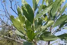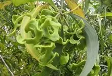 大叶相思是豆科,相思树属常绿乔木,枝条下垂,树皮平滑,灰白色;叶片镰状长圆形,两端渐狭,穗状花序,簇生于叶腋或枝顶;花橙黄色;花萼顶端浅齿裂;花瓣长圆形,荚果成熟时旋卷,果瓣木质,种子黑色,…全部>>
