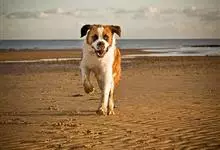 圣伯纳犬,别名巴里汉德,属于大型工作犬,肩高约65~90厘米,体重约50~90千克。圣伯纳犬身体强壮,被毛红褐色和白色相间,头圆而宽大。颈部强壮,胸宽深,背直。前肢长直,腕关节略前倾,后肢腿骨粗壮,…全部>>