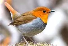 日本歌鸲:体型小似麻雀,但羽毛颜色较为美丽。嘴细长,嘴须不发达;翅短圆,上体草黄褐;雄鸟喉部橙棕色,十分明显,雌鸟却转为淡橙黄色。第一枚初级飞羽短狭;尾长约为跗蹠长度的二倍;跗蹠黑褐色,形粗长而健。…全部>>