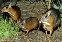 鼷鹿,别名小鼷鹿,共38个亚种。体形略比野兔大,体重1.3~2.0kg,体长420~630mm,肩高约200mm,是仅次于蹄兔目成员最小的有蹄类动物,也是鼷鹿科种体型最小的一种。面部尖长,无角,…全部>>