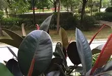 印度榕,别名橡皮树,桑科榕属多年生常绿乔木植物。株高30米;树皮灰白色,平滑;叶厚革质,长圆形或椭圆形,叶柄粗,托叶膜质,深红色;榕果成对生于落叶枝叶腋,卵状长椭圆形,…全部>>