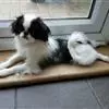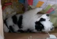 日本狆是极小型犬;被毛长而丰厚,不弯曲;毛色为白色底,带黑色或栗色斑块,斑块颜色越艳越好;斑块以在耳、身、面、尾根左右对称者为佳;头较大而圆,头骨平坦;吻短,鼻尖缩至两眼之间,几乎与眼同齐;眼大而凸出,…全部>>