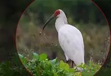 圣鹮头、颈黑色,身体白色,初级和次级飞羽尖端黑色。喙长且厚、黑色下弯,跗蹠与趾黑色。下背部有大量黑色纱状装饰羽,翼下裸露皮肤红色,体侧有时带黄褐色。亚成鸟的头、颈有羽毛,斑驳黑色带有白色纵纹,…全部>>