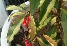 朱砂根是报春花科紫金牛属植物,又名铁凉伞、红铜盘、百两金、大罗伞、开喉箭等,为常绿小灌木,高1~2米,茎粗壮,无毛,除侧生特殊花枝外,无分枝,叶片革质或坚纸质,椭圆形、椭圆状披针形至倒披针形,…全部>>
