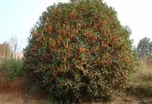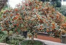 朱砂桂:为丹桂品种群,乔木,高5米,灌幅3米,树冠圆球形,紧密度中等,树皮浅灰色,比较平滑,皮孔稀疏,形状。大小不一。叶片披针形,长10-15厘米,宽3.5-4.0厘米,叶色暗绿,全缘或顶端有锯齿,…全部>>