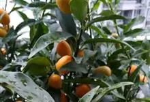 金柑,是芸香科柑橘属的灌木。高达两米;单叶,叶片呈卵状椭圆形,顶端圆或钝,基部短尖;花为单花腋生,常位于叶柄与刺之间,花萼呈杯状淡绿色裂片三角形,花瓣呈卵形白色,花丝合生呈筒状;果实呈圆或椭圆形,…全部>>