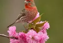 红眉朱雀:体长15厘米,是一种中等体型的朱雀。上体褐色斑驳,眉纹、脸颊、胸及腰淡紫粉,臀近白。雌鸟无粉色,但具明显的皮黄色眉纹。雄雌两性均甚似体型较小的曙红朱雀,但嘴较粗厚且尾的比例较长。…全部>>