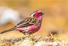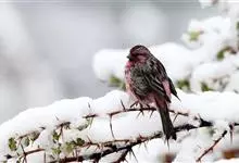 喜马拉雅白眉朱雀:小型鸟类,体长15-17厘米,体重24-35克。额基、眼先深红色,前额和一条长而宽阔的眉纹珠白色沾有粉红色并具丝娟光泽,在暗色的头部极为醒目。头顶至背棕褐或红褐色、具黑褐色羽干纹,…全部>>