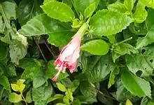 吊灯扶桑 Hook. f.)为锦葵科木槿属的常绿灌木。高达3米;小枝常下垂;叶椭圆形或长圆形,先端尖或短渐尖,基部楔形;花梗细,无毛或具纤毛,中部具节;蒴果长圆柱形;花期全年。因似灯笼高挂,…全部>>