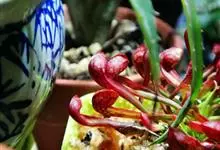 红瓶子草是一种相对体形较大、气质高雅的食虫植物,叶子成瓶状直立,颜色鲜艳,共有五个亚种。瓶高在26- 61厘米之间,整个红色。形态和猪笼草的笼子相似,能分泌蜜汁和消化液,受蜜汁引诱的昆虫失足掉落瓶中,…全部>>