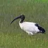 圣鹮头、颈黑色,身体白色,初级和次级飞羽尖端黑色。喙长且厚、黑色下弯,跗蹠与趾黑色。下背部有大量黑色纱状装饰羽,翼下裸露皮肤红色,体侧有时带黄褐色。亚成鸟的头、颈有羽毛,斑驳黑色带有白色纵纹,…全部>>