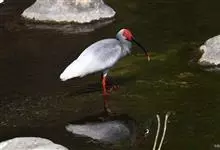 圣鹮头、颈黑色,身体白色,初级和次级飞羽尖端黑色。喙长且厚、黑色下弯,跗蹠与趾黑色。下背部有大量黑色纱状装饰羽,翼下裸露皮肤红色,体侧有时带黄褐色。亚成鸟的头、颈有羽毛,斑驳黑色带有白色纵纹,…全部>>